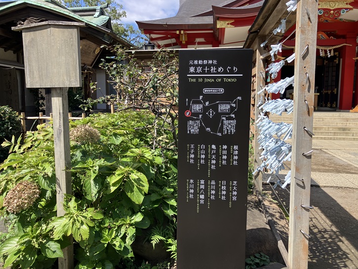 明治元年(1868年)11月8日、明治天皇が品川神社を准勅祭社と定め、東京の鎮護と万民の安泰を祈る神社のひとつとしました。明治五年(1872年)に郷社に列し、昭和五十年(1975年)に東京十社に列しています。東京十社は、元准勅祭社12社の内から、昭和五十年(1975年)に定められた東京近郊の10の神社のことです。明治維新が成立した後、東京に奠都した明治天皇は、明治元年(1868年)10月17日に氷川神社の例大祭を新たに勅祭に定めました。それに続いて11月8日に、それまでの畿内二十二社などの勅祭社に併せて東京近郊の主だった神社を准勅祭社と定めて東京の鎮護と万民の安泰を祈る神社としました。当初は12社(日枝神社・根津神社・芝神明宮・神田神社・白山神社・亀戸神社・品川神社・富岡八幡神社・王子神社・赤坂氷川神社・六所神社・鷲宮神社)でしたが、2年後の明治三年(1870年)9月1日には廃止され、准勅祭社の制度は一時的なもので終わってしまいました。その結果、12の神社は府社あるいは郷社となりました。昭和五十年(1975年)、昭和天皇即位50年を奉祝して関係神社が協議を行い、准勅祭社から遠隔の府中町六所宮と埼玉県久喜市の鷲宮神社を外し、23区内の10社を巡る「東京十社巡り」が成立しました。