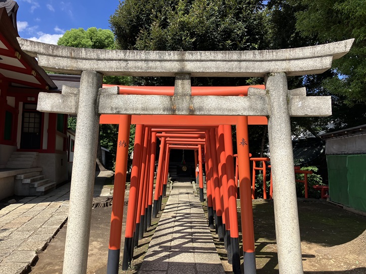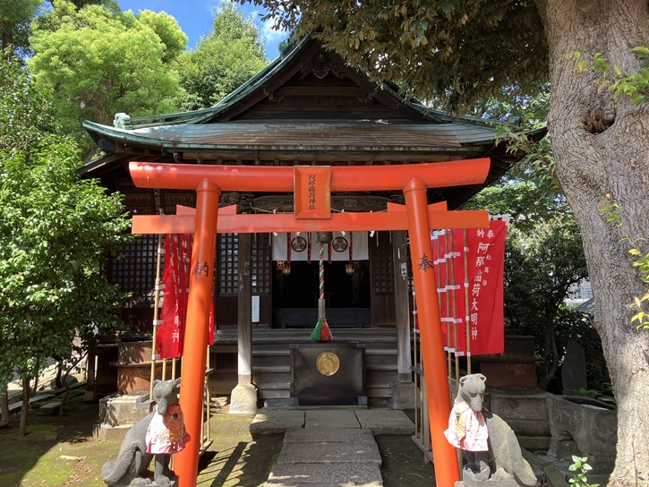 拝殿の右隣には、朱色の鳥居が立ち並ぶ阿那稲荷神社があります。