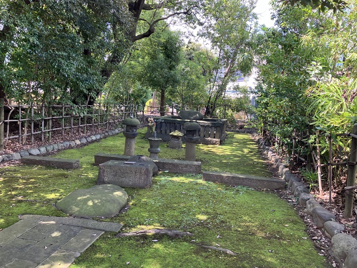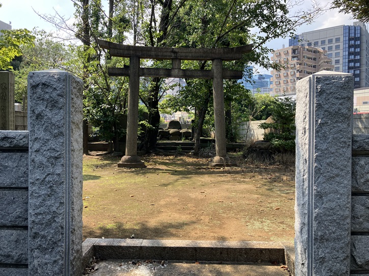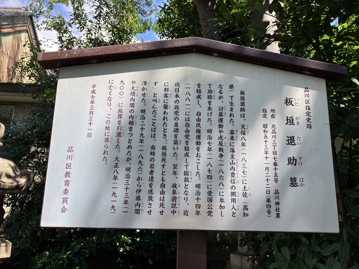 板垣退助の墓所は、品川神社の社殿の右手から回り込んだ突き当たり(神社の境外)にあります。