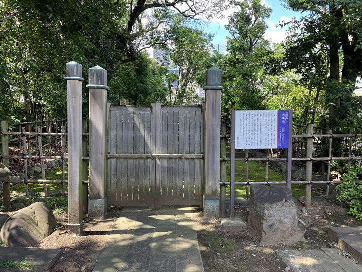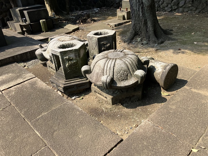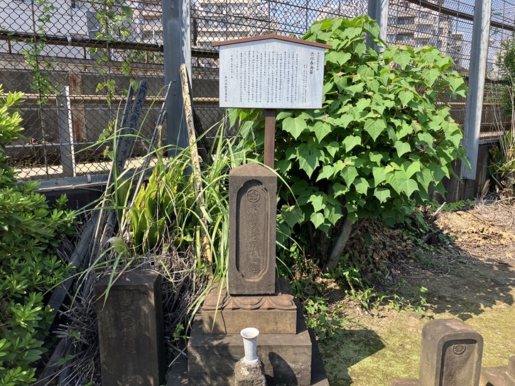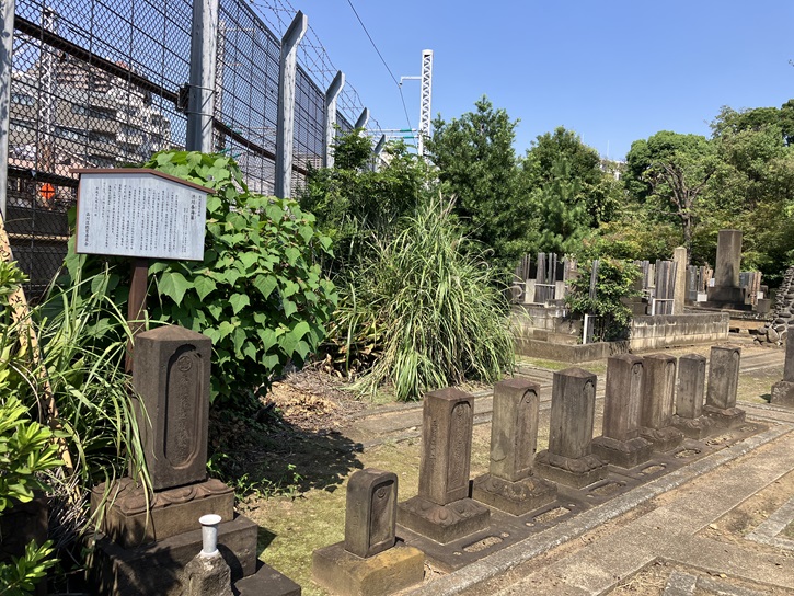同じく東海道新幹線・山手線のフェンス際に墓石が一列に並んでいます。旧肥後熊本藩細川家家臣とその一族の墳墓地です。