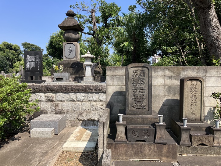 「夢塔」の手前には、「服部南郭」のお墓があります。服部南郭は江戸時代中期の日本の儒者・漢詩人・画家で、荻生徂徠の高弟として知られます。