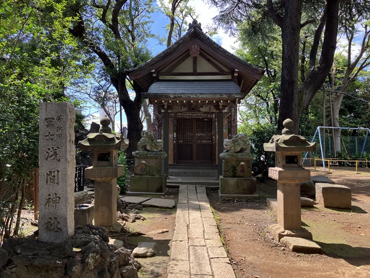 境内の東端に浅間神社があります。浅間神社は、富士信仰の神社です。