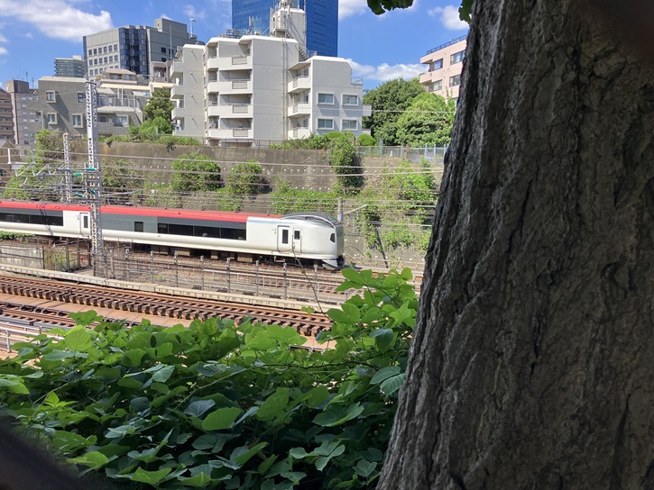 公園の崖下にはJRの線路が何本も走っていて、ブランコに乗りながら東海道新幹線や山手線、時間帯が合えば成田エクスプレスが走っている光景を見ることができます。間近で見る電車はなかなか迫力があります。