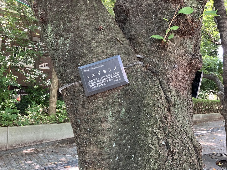 <染井吉野> 江戸彼岸と大島桜の雑種。明治初年に東京の染井(現在の駒込)から広まったサクラの代表種です。(バラ科)