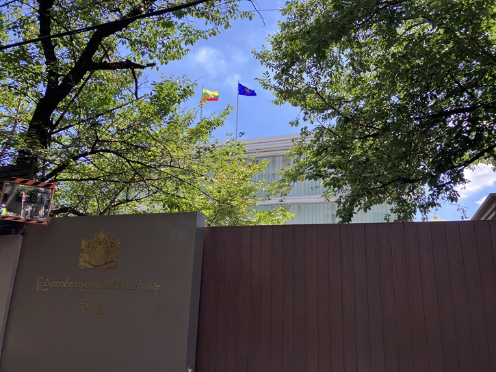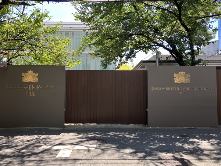 御殿山地区にはミャンマー大使館があります。大国の大使館みたいに随分と立派な建物ですね。