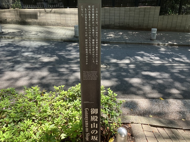 This area is called "Goten-yama" (Palace mountain). There was once the Shinagawa Palace where the shogun (the General) took a rest on the time of the falconry the Edo Period.