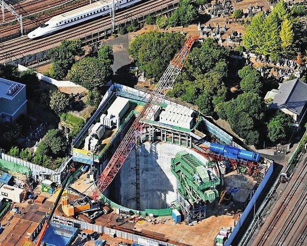ゲートの入口からはよく見えませんが、巨大な縦坑が掘られ、シールドマシンが大深度トンネルを掘削しているのだそうです。工事はかなり難航しているとのことです。