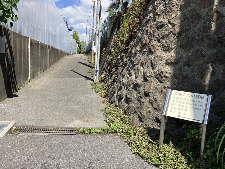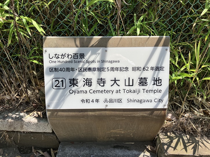 路地の入口角には「東海寺大山墓地」の案内板が立っています。