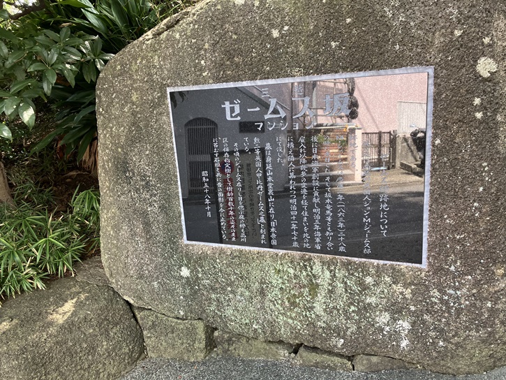 路地の左手にマンションが建っています。此の敷地はゼームス坂の坂名の由来となった明治時代の英国人ゼームスが住んでいた邸宅の跡地なのだそうです。