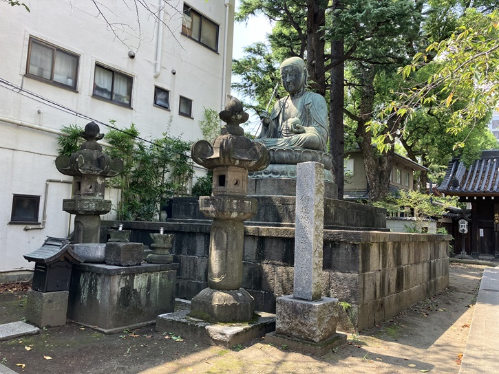 山門前左手にある銅造地蔵菩薩坐像は宝永五年(1708年)に造られ、江戸六地蔵の第一番となっています。現存する江戸六地蔵像のうち、唯一頭上に傘を載せていません。