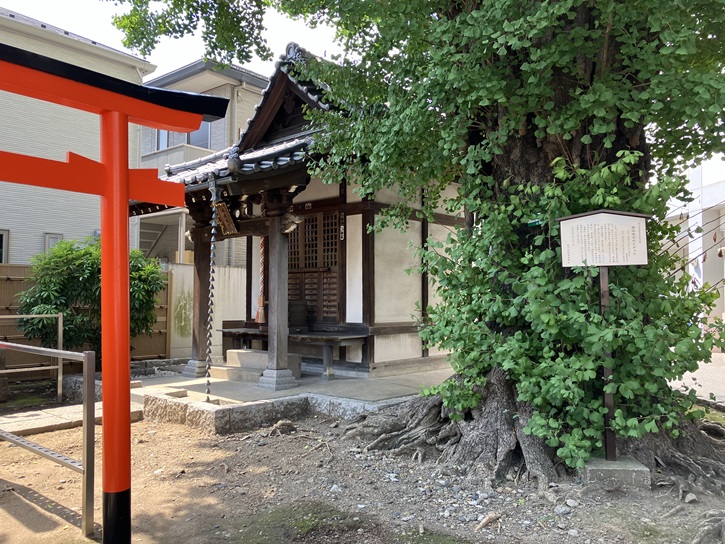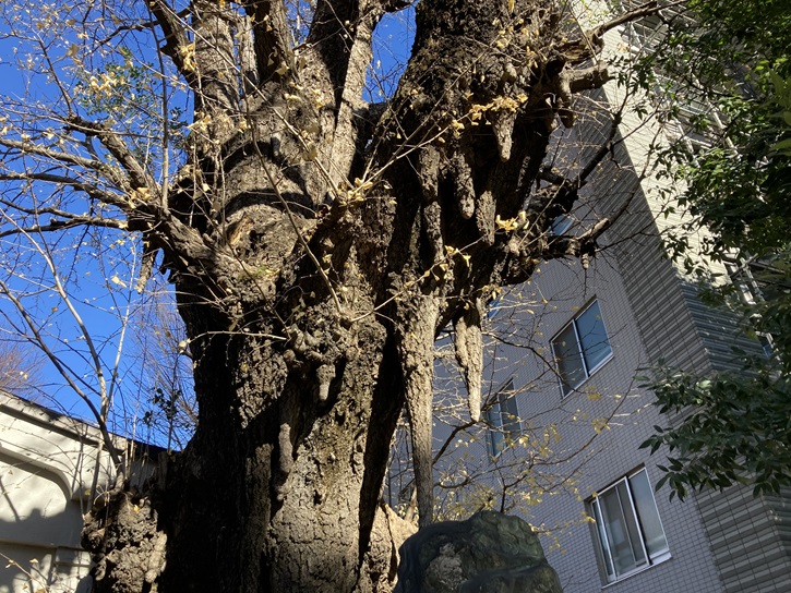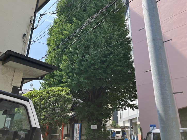 狭い境内には不釣り合いな銀杏の巨木が聳えています。