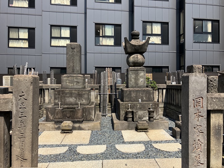 右側の墓石が桃中軒雲右衛門のお墓です。