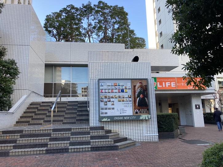 御成橋から「居木橋」に向かいます。御成橋を渡った先の右手に、1980年代に星製薬や日本精工の大崎工場跡地を再開発して誕生した大崎ニューシティという複合施設があります。大崎ニューシティは、低層館2階屋上にあたる部分を人工地盤にして中庭(Oパティオ)を設け、緑と噴水・彫刻・イベント広場などを設け、山手通りをまたぐ屋根付きの歩道橋(O歩道橋)で大崎駅と直結しています。またOパティオを取り囲むように、リンガーハット本社やダイソー東京本部などが入居するTOC大崎ビルディング、2階に「O美術館」が入居するニューオータニイン東京、日本精工本社・日立オムロンターミナルソリューションズ東京本社・三菱電機フィナンシャルソリューションズ本社が入居する日精ビルディング、新大崎勧業ビルディングなど4棟の高層ビル群で構成されています。低層の店舗棟には、以前ダイエーが入っていましたが、現在はライフが入居し、周辺の再開発で激増した住人の食料の供給地となっています。