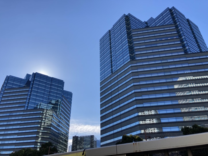 大崎ニューシティの先には特徴的な外観のゲートシティ大崎があります。ゲートシティ大崎は、「イーストタワー・ウエストタワー」からなる2棟の超高層オフィスビルと商業施設(ゲートシティプラザ)で構成され、大崎駅東口第2地区市街地再開発事業として1999年2月10日にグランドオープンしました。航空法による制限によって建物の高さが137mを超えられないため、高さによらずに四角形・八角形・十字形を組み合わせたツインタワーのデザインが採用されました。このデザインによって、周辺地域への日影・圧迫感・風害などの悪影響を大幅に軽減しています。