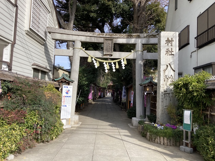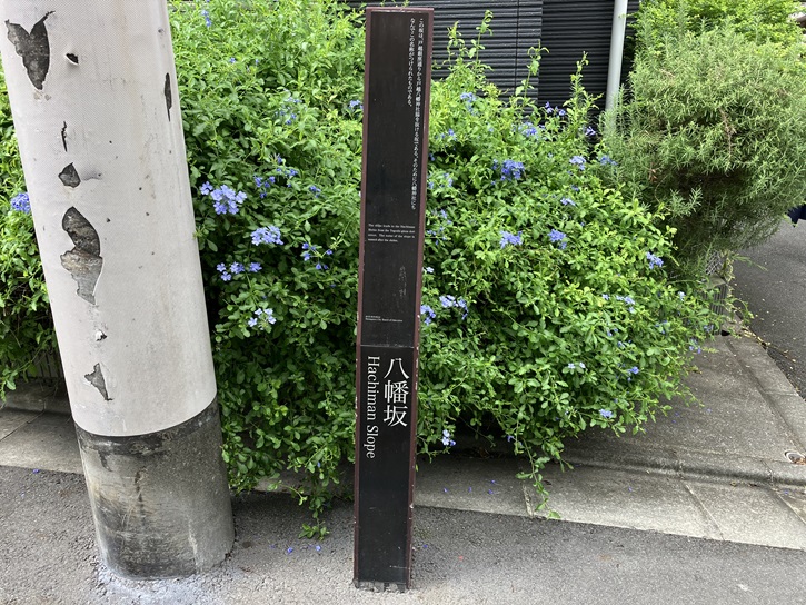 The slope leads to the Hachiman Shrine from the Togoshi-ginza dori street. The name of the slope is named after the shrine.