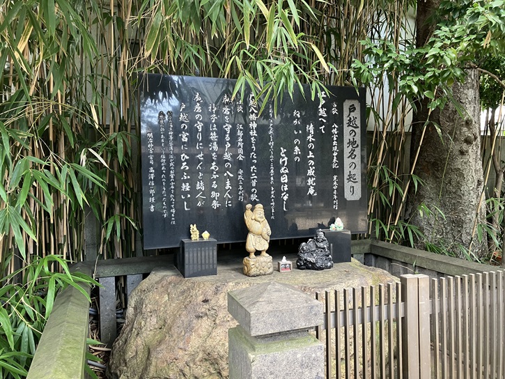 境内には、「戸越の地名の起り」と題した石版が置かれています。