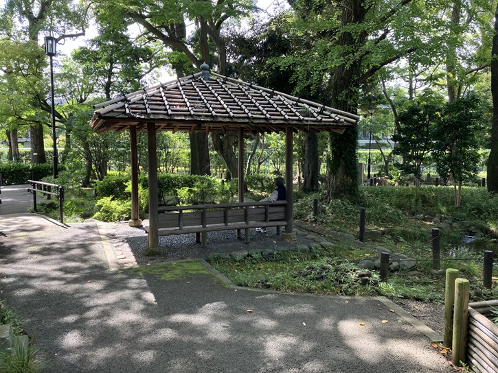 もみじ池の畔には東屋が建っていて、その周辺には「肥後六花」と称される野草が見られます。
