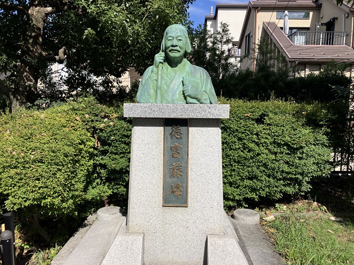 山王草堂前の広場に蘇峰の胸像が建っています。パンフレットには次のように紹介されています。