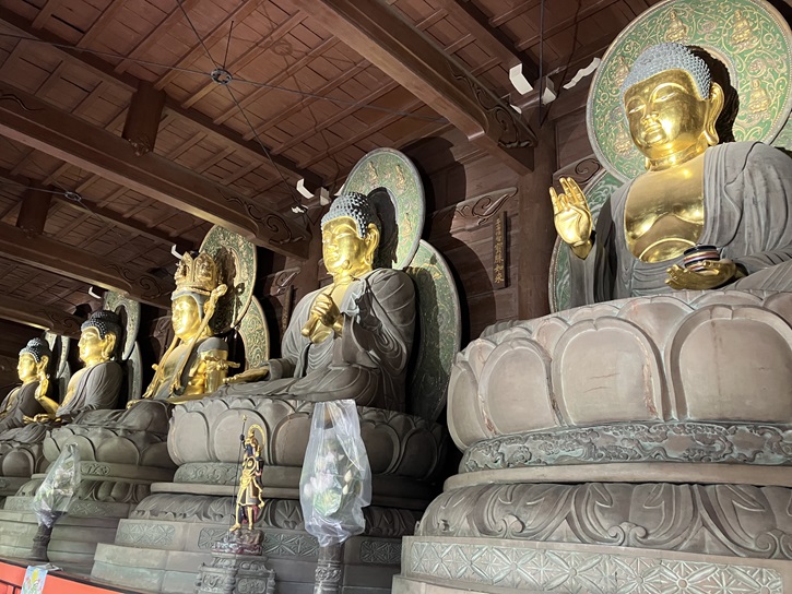 お堂には大きな五智如来像があります。境内には金剛力士(仁王像)、龍神観音、座聖観音、布袋尊像が安置されています。