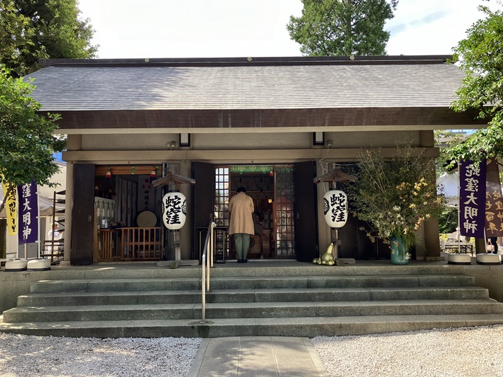 白蛇に縁起のある神社で、防災招福総鎮護として知られています。境内の弁財天には小さな池があります。
