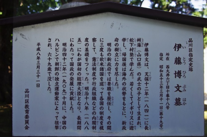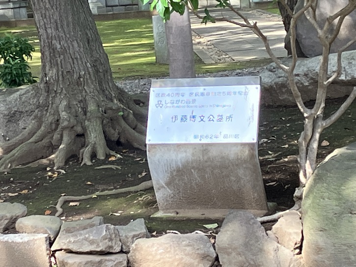 墓所内には立ち入れませんでしたが、広い敷地には伊藤博文公の胸像や案内板が建っています。