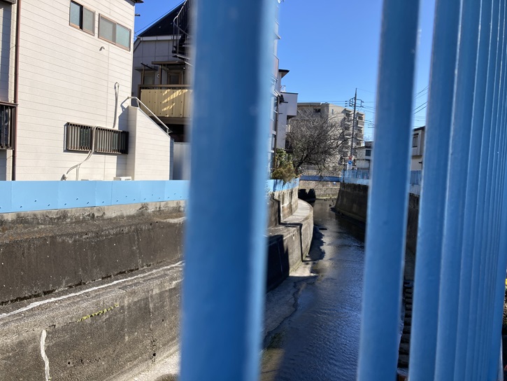 遊歩道の終端から立会川は開渠となり、勝島運河に注ぐ河口まで住宅地の中を流れて行きます。