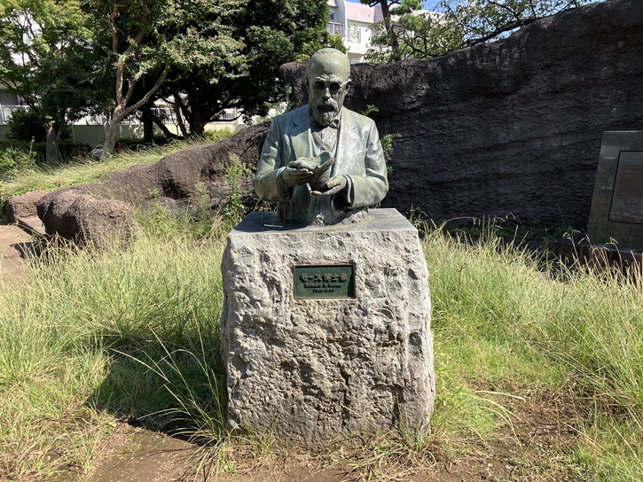 縄文の広場の脇には、「モースの広場」があります。大森貝塚の発見者、モース博士の胸像が広場の中央に置かれています。また、博士生誕の地であるポートランドとの姉妹都市記念碑もあります。