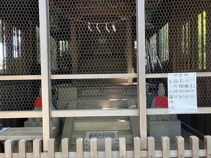 旧社殿には、三峰神社・金刀比羅神社・天祖神社・八幡神社・稲荷神社の五社が境内社として祀られています。