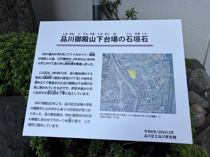 その左手には、品川宿の護岸で使われた石垣が復元されて展示してあります。
