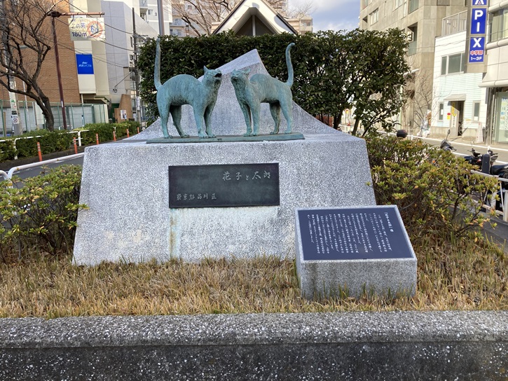 立会川緑道の一画に2匹の猫の銅像があります。