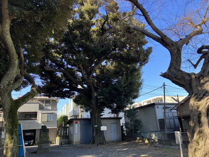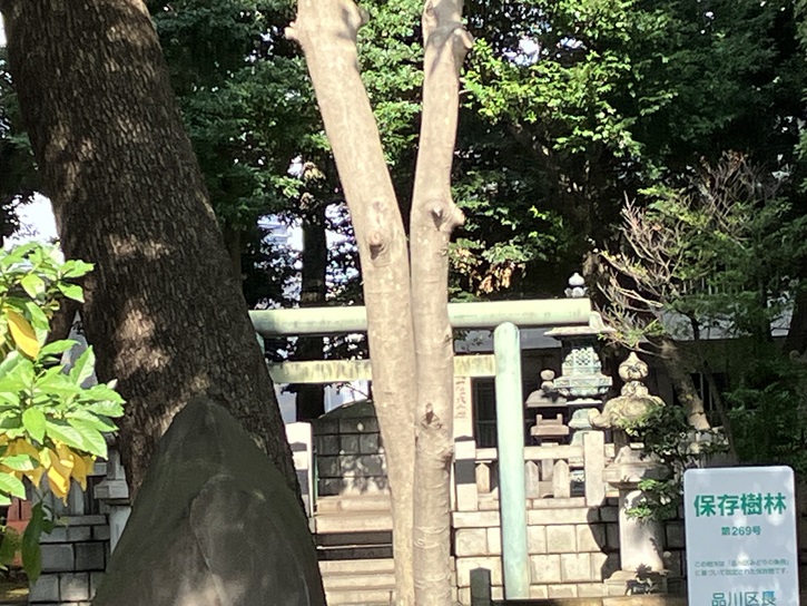 境内には椎の木の大木があり、この椎の木は品川区指定文化財になっています。2023年5月に東急不動産を事業主として、この区指定天然記念物である樹齢約200年の椎の木を始めとした境内の樹木の殆どを伐採し、敷地に低層マンションを建設する計画が報道されました。その後の経緯は分かりませんが、神社の景観はどうなるのでしょうか?