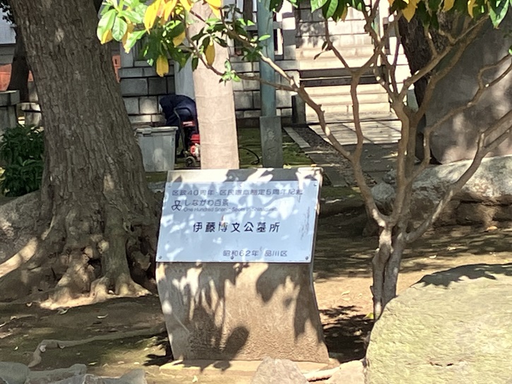 墓所は、高さ約2メートルの円墳の前に鳥居を配した神式で、隣にはやや小型の梅子夫人の墓があります。墓所は一般的な霊園やお墓と違い、歴史的な文化財として保全されています。通常は非公開のため入れませんが、文化財ウィークの毎年11月の一般公開日には数日限定で公開されます。伊藤博文公墓所は、しながわ百景に選ばれています。