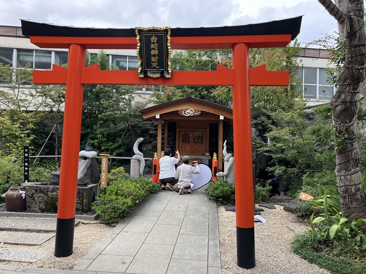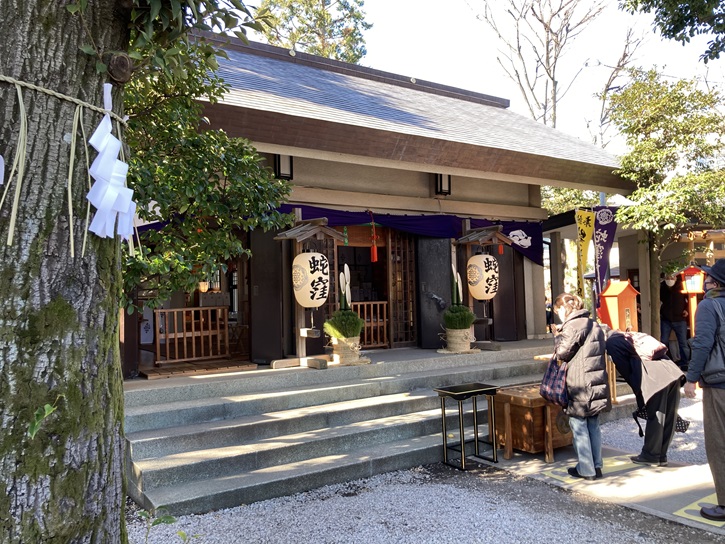 白蛇辨財天の前には「銭洗い所」があります。これらの施設は、鎮座七百年を記念して令和三年4月1日に建替え・新設されました。