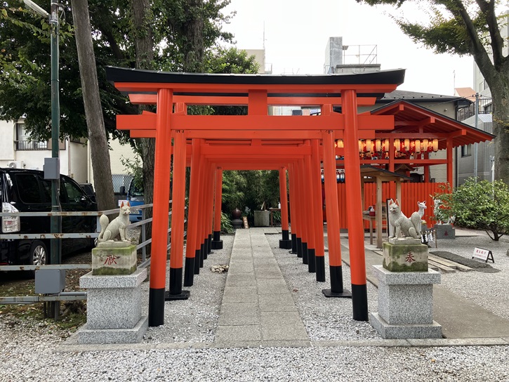 本殿の左手前に、境内社の「法密稲荷社」があります。元亨二年(1322年)に武蔵の国が深刻な大飢饉に見舞われた際に、厳正寺第二世法密上人は雨乞いの断食祈願をしました。そして豊作を祈るため、京都伏見稲荷大社の御分霊をお祀りし、稲荷社が建立されました。雨乞いが行われてから七百年目に当る令和四年11月1日に建て替えられ、稲荷社の由緒を後世に伝えるために「法密稲荷社」と改名されました。