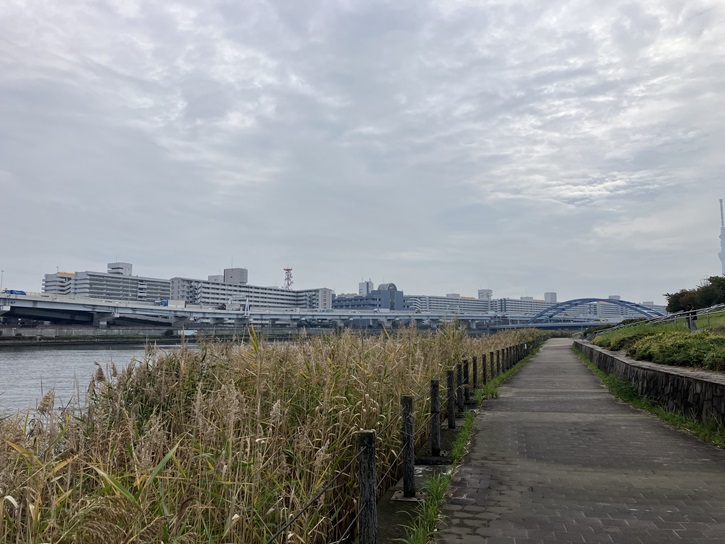 - 今日は荒川区の「B.隅田川の川沿い散策ルート(往復)」を歩きます。隅田川の土手に設けられた遊歩道を始点から白鬚橋西詰交差点まで往復します。最初に歩いたのは2022年の1月でしたが、記憶が薄れてきましたので2024年11月に改めて歩きました。なので、冬と晩秋の写真が入り交じっています。