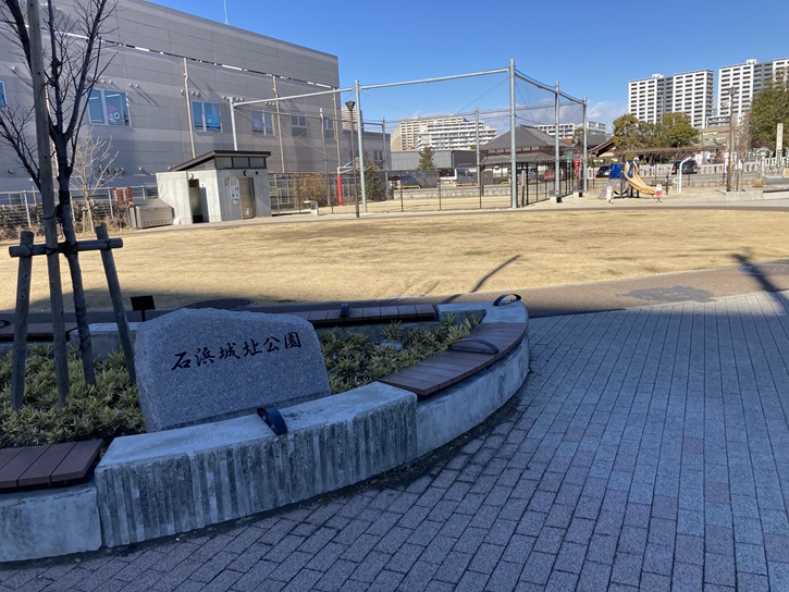 川の手通りを渡った角に、石浜城址公園があります。石浜城は、中世の武蔵国に存在した日本の城ですが、正確な所在地については意見が分かれています。現在の台東区浅草七丁目付近、あるいは荒川区南千住三丁目付近が候補地となっています。石浜(石濱)は浅草の北側にある古利根川(現在の隅田川)右岸地域の呼称であり、この付近に武蔵国と下総国(千葉県)の境目をつなぐ「隅田の渡し」があったとされています。築城年代は不明ですが、中世には江戸氏一族の石浜氏が本拠を構え、南北朝時代の文和元年(1352年)には、新田義興の追撃を受けた足利尊氏がこの地で武蔵平一揆に迎えられて追撃を退けています(武蔵野合戦)。室町時代中期の享徳の乱に伴って発生した千葉氏の内紛では、宗家の生き残りである千葉実胤(千葉兼胤の孫)が下総国を追われて扇谷上杉氏の庇護下に入り、石浜城を拠点としました(武蔵千葉氏)。この際、弟の自胤も赤塚城に逃れています。ですが、下総回復は達成できず、扇谷上杉氏の没落後は後北条氏に従って同氏一族の千葉胤村を当主に迎え、豊臣秀吉による天正十八年(1590年)の小田原征伐によって没落し、石浜城も廃城となりました。石浜城は、曲亭馬琴の「南総里見八犬伝」にも登場しています。
