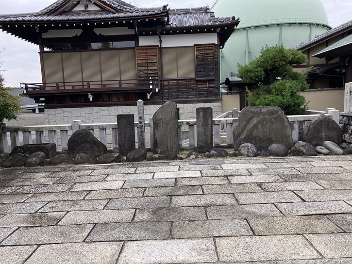 was very anxious about his health and visited this villa himself to comfort Sanjo. This monument was created by a citizen who owned the villa later to commemorate