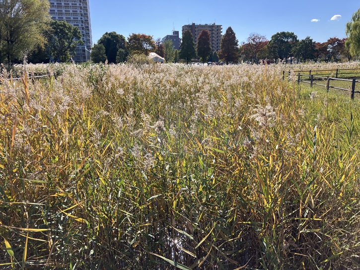 水面は見えませんが、葦の生い茂ったところは自然の池になっています。