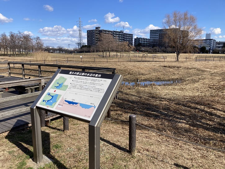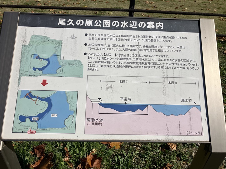 ●尾久の原公園の水辺は工場跡地に生まれた湿性地の保護に重点を置いて多様な生物生育環境の創出を図るのを目的として、公園の整備をしています。
