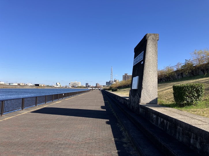 尾久の原公園から隅田川テラスに降りた辺りに、「隅田川旧防潮堤」のモニュメントが建っています。スーパー堤防の整備の際、昭和三十二年から昭和五十年にかけて建設されたコンクリート製の防潮堤の一部を残し、これまで幾多の台風や洪水から地域を守ってきた直立の防潮堤を後世に伝えるために保存・展示しているものです。