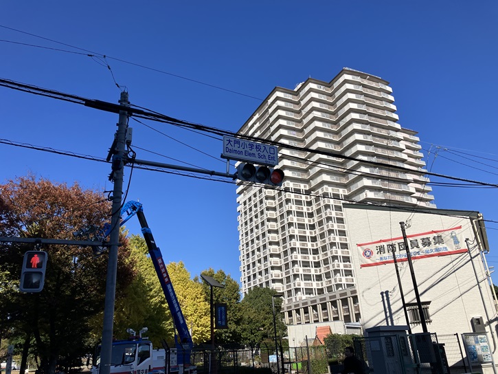 都立大荒川キャンパス前から大門小学校入口交差点までの通りは、この地にあった旭電化工業尾久工場に因んで「旭電化通り」と呼ばれています。大門小学校入口交差点を右折し、都市計画道路(補助第306号線)に入ります。