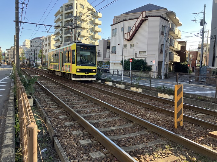 この区間の荒川線は、道路の中央部に軌道敷が区切られたセンターリザベーション方式が採用されています。軌道敷内は一般車両は通行できず、道路との交差部を除いて横断もできません。都電荒川線は、第二次世界大戦前の東京市時代からの歴史を持つ都電路線が相次ぎ廃止された後も東京に残る唯一の都電で、三ノ輪橋停留場〜早稲田停留場間(12.2km・30停留場)を運行しています。愛称は「東京さくらトラム」で、地域の身近な足として長年親しまれ、沿線には、桜やバラなど花の見どころや歴史・文化に触れられる名所旧跡、生活感あふれる昔ながらの商店街など多様で魅力あるスポットが満載です。