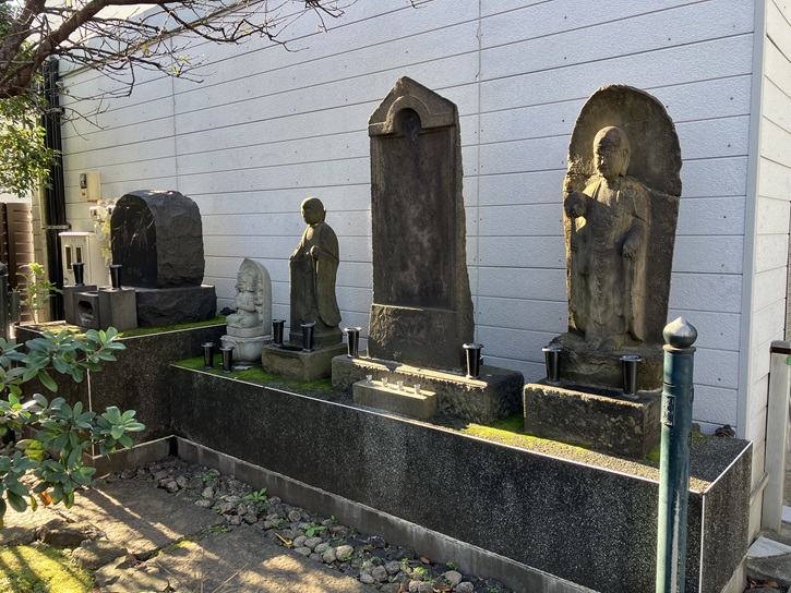 境内には、永和元年(1375年)銘や天文年間(1532年〜1555年)銘の6基の板碑と2基の庚申塔があります。板碑とは、故人の供養のための石造りの卒塔婆のことです。鎌倉時代から江戸時代にかけ、主に関東・東北地方で作られました。