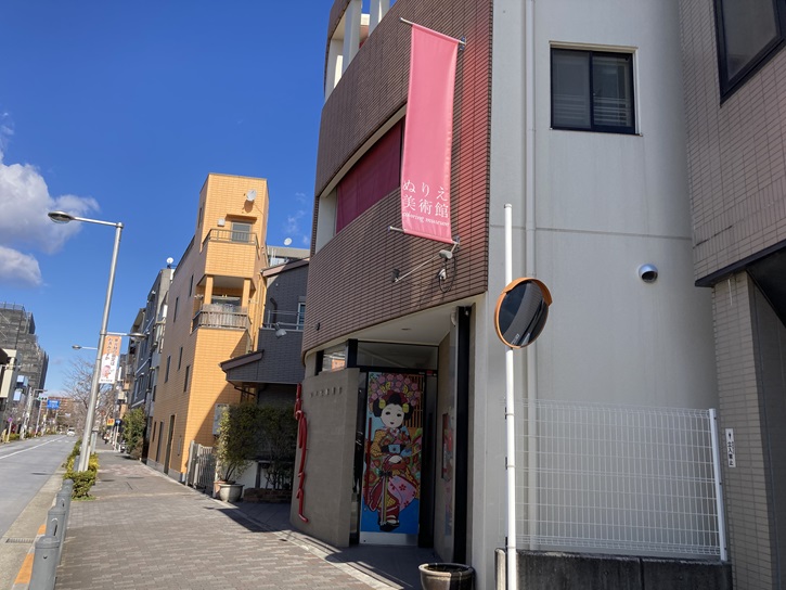 しかしながら、約20年に亘って運営してきた「ぬりえ美術館」でしたが、2022年10月30日に閉館しました。2024年11月に再訪した時は看板は外され、壁にはタイルが貼られていました。