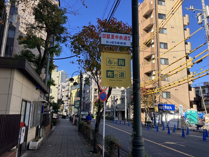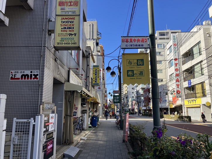 日暮里繊維街は、大正から昭和の終わり頃までは問屋街として地方の専門業者に卸売りをするお店が建ち並ぶ街でしたが、時代の変化と共に小売り対応するお店が増えてきました。現在、日暮里駅から日暮里中央通りを中心に両側約1kmに亘って約90店舗(約60社)の生地織物の店が軒を連ね、ファッション・手芸・ものづくりを楽しむ人達(デザイナー・アパレルメーカー・作家・学生など)が材料を探しに訪れています。メインの通りである日暮里中央通りには、和装・洋装・紳士婦人服地・繊維製品・服飾関連の小物から付属品に至るまでファッションや手芸に関する全てのものを取り揃えた品揃え豊富なお店が並んでいます。また、繊維資材を中心に革・付属・ボタン・型紙・縫製・アクセサリー等の様々な専門店が増えてきています。メイン通りから外れた裏路地や建物2階にある「裏にっぽり」・尾竹橋通りを越えた「奥にっぽり」などにも1軒1軒の品揃えが異なる面白い素材を揃えたお店があります。近年では海外の人も多く訪れ、国内だけでなく世界中の人達から注目を集めています。