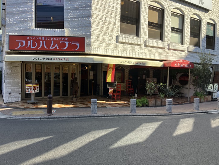 日暮里繊維街から高村光太郎記念碑に向かいます。尾久橋通りの西日暮里二丁目交差点の先で左折し、路地に入ります。常磐線の踏切を渡り、京成本線の高架下を潜ってそのまま進みますと、西日暮里駅に出ます。駅前の飲食店が建並ぶ一角に、1971年創業の老舗スペイン料理専門店の「アルハムブラ」というお店があります。本格的なスペイン料理と圧巻のフラメンコライブショーが楽しめ、国内外の有名なダンサーやアーティストがステージに登場します。スペインの下町をモチーフにした広々とした店内には、ショーを観ながらお食事を楽しめる席のほかに、落ち着いた雰囲気のカウンター席とテーブル席もあります。自慢のパエリアを始め、プリプリ海老やジューシーな若鶏を使用したアヒージョや蟹とアボカドのサラダなど、多彩なスペイン料理を味わえます。
