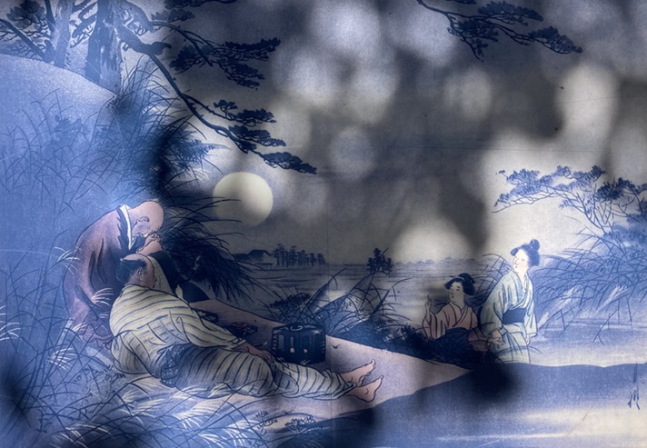 挿絵は、「大日本名所図会」尾形月耕画の「道灌山虫聴」です。