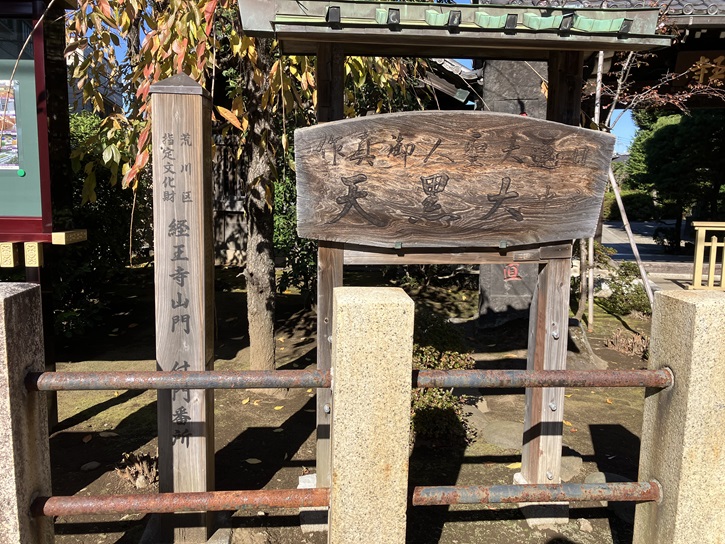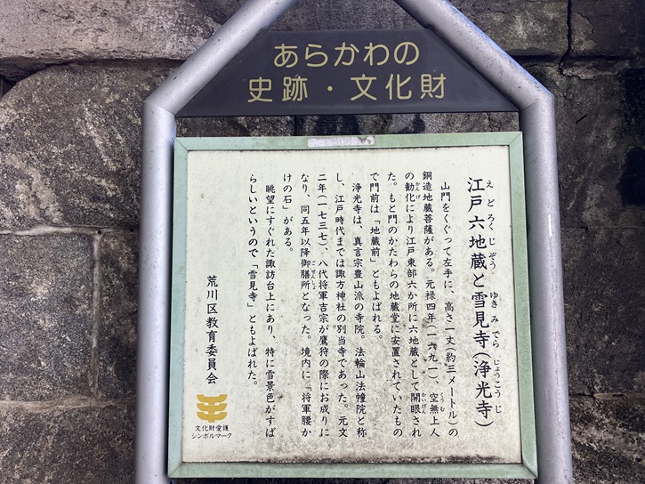 The main gate is a designated tangible cultural property of Arakawa City. In 1868, the fleeing Shogitai troops took refuge at the temple until they came under fire from the Imperial Army at the Battle of Ueno. To this day, bullet holes in the gate remain as a result of the conflict.