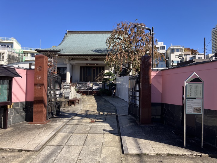 Emmei'in is a Nichiren Buddhist temple founded in 1648 by Misawa no Tsubone, the wet nurse of Tokugawa Ietsuna, 4th shogun of the Tokugawa Dynasty. A priest named Eshoin Nitcho prayed for a safe delivery when the shogun was born, and so Misawa no Tsubone made a donation to Eshoin and asked him to call upon and enshrine Shichimen Daimyojin (a guardian deity of the Lotus Sutra) from Mount Minobu in Koshu province (modern day