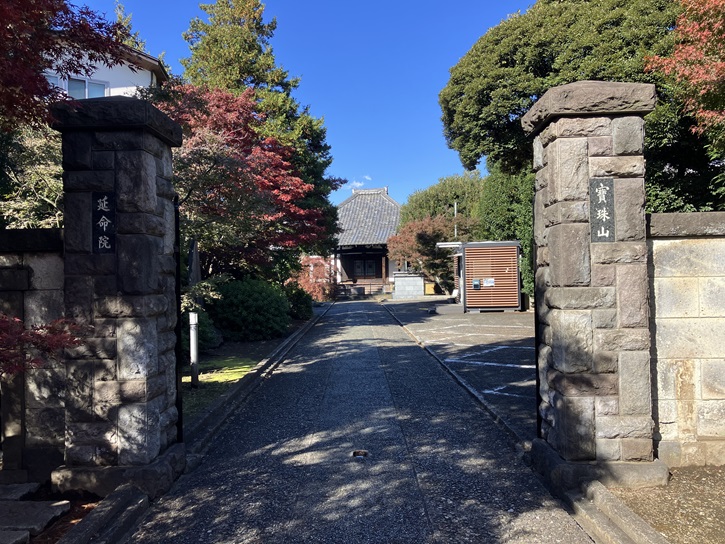 諏訪台通りの手前に、延命院があります。延命院は、江戸時代の享和年間に「延命院事件」と呼ばれる江戸中を騒がせる大事件の舞台となったことで知られています。この事件は、延命院の住職であった日潤の女犯事件で、相手に大奥の女中が含まれていたために、大奥を巻き込んだ一大スキャンダルになり、江戸中を揺るがせることとなりました。日潤は初代尾上菊五郎の子供であったと書かれている本もあり、男前であり、話も上手だったと言われています。そのために女性の信者に大変人気があり、大勢の女性信者が延命院に参詣するようになったことが事件の背景にありました。